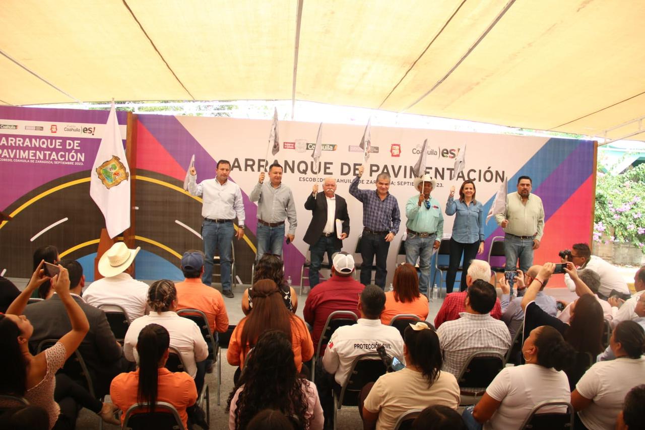 San Buenaventura, Coahuila de Zaragoza; a 27 de Septiembre de 2023.- El gobernador Miguel Ángel Riquelme Solís entregó y arrancó obras de infraestructura deportiva, educativa y vial por el orden de los 11.5 millones de pesos en su gira de trabajo por municipios de la Región Centro, en la que expresó su gratitud y reconocimiento a toda la gente de esta zona de Coahuila por el trabajo durante su Administración, por las decisiones y acciones que se tomaron y que permitieron reactivar el desarrollo económico, social, deportivo, cultural, educativo y en materia de seguridad.