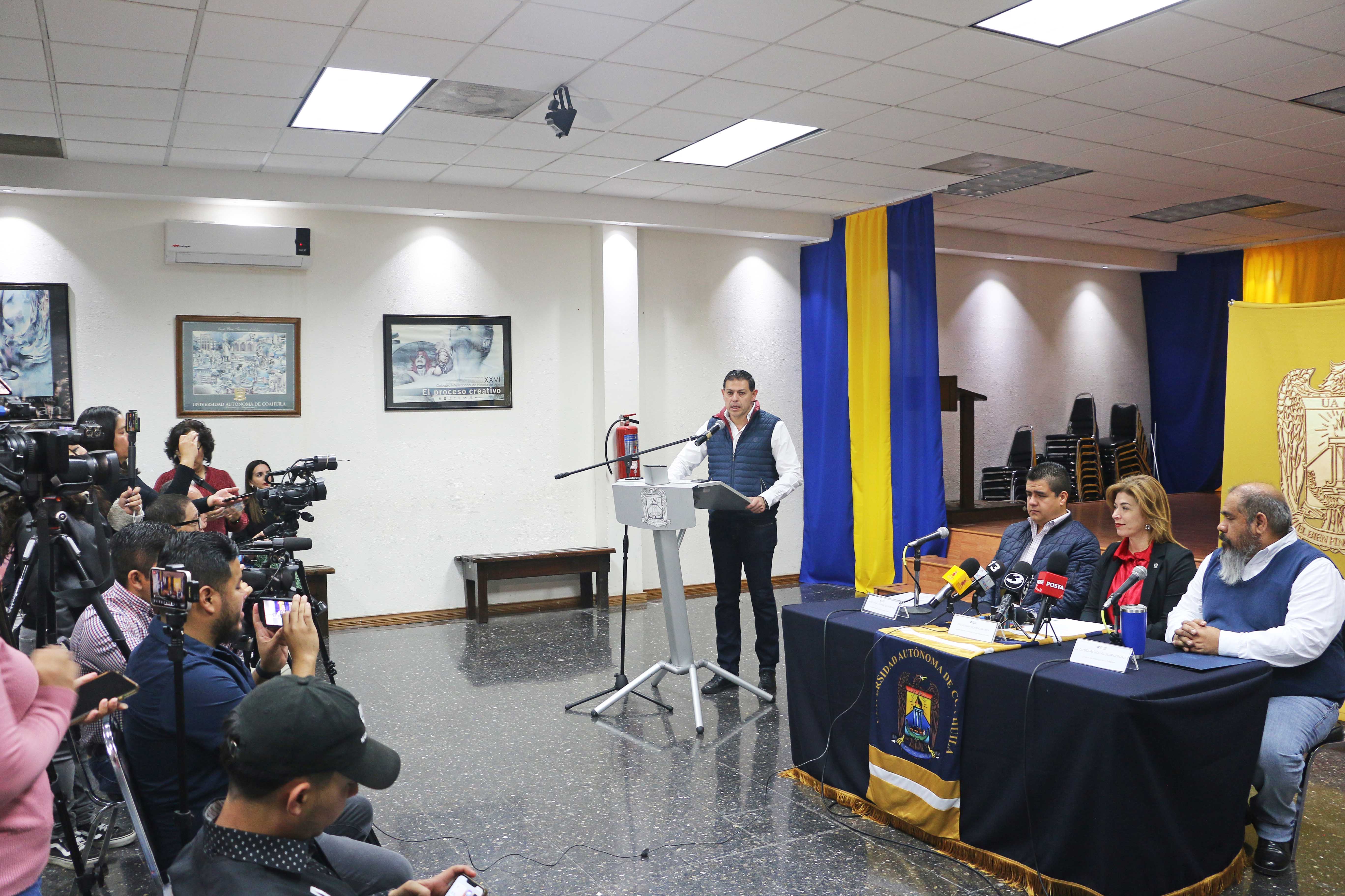 Acompañado por la coordinadora de la Dirección de Asuntos Académicos, Martha Adriana Centeno Aranda; el director de Investigación y Posgrado, Cristóbal Noé Aguilar González y el titular de la Coordinación de Educación a Distancia, Daniel Hernández Cárdenas, el Rector anunció la continuación de este proceso que conforme a la Ley General de Educación Superior amplía la matrícula en los niveles medio superior y superior.