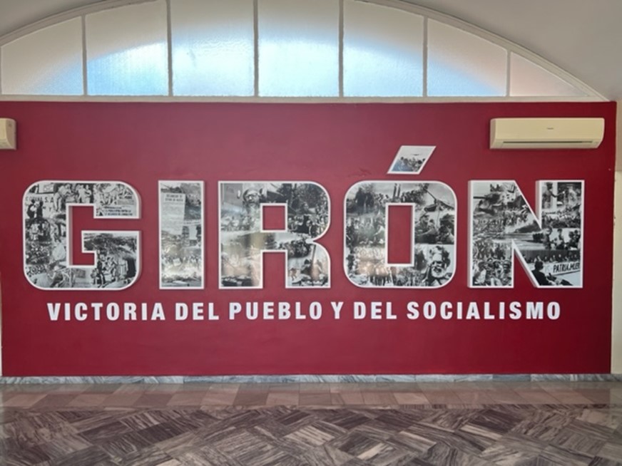 Se exhiben objetos que dan testimonio de los hechos ocurridos en Playa Girón, del 17 al 19 de abril de 1961, cuando cubanos en el exilio, con el apoyo de Estados Unidos, desembarcan en esta zona en busca de establecer una cabeza de playa, para ser reconocidos como un nuevo gobierno.