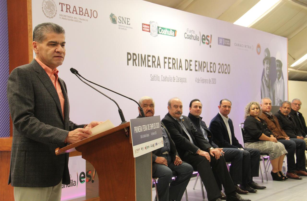 Saltillo, Coahuila de Zaragoza; a 4 de Febrero de 2020.- Con la participación de 50 empresas que ofertan más de 3 mil vacantes, este día se inauguró la Primera Feria Nacional de Empleo 2020, evento encabezado por el gobernador Miguel Ángel Riquelme Solís.
