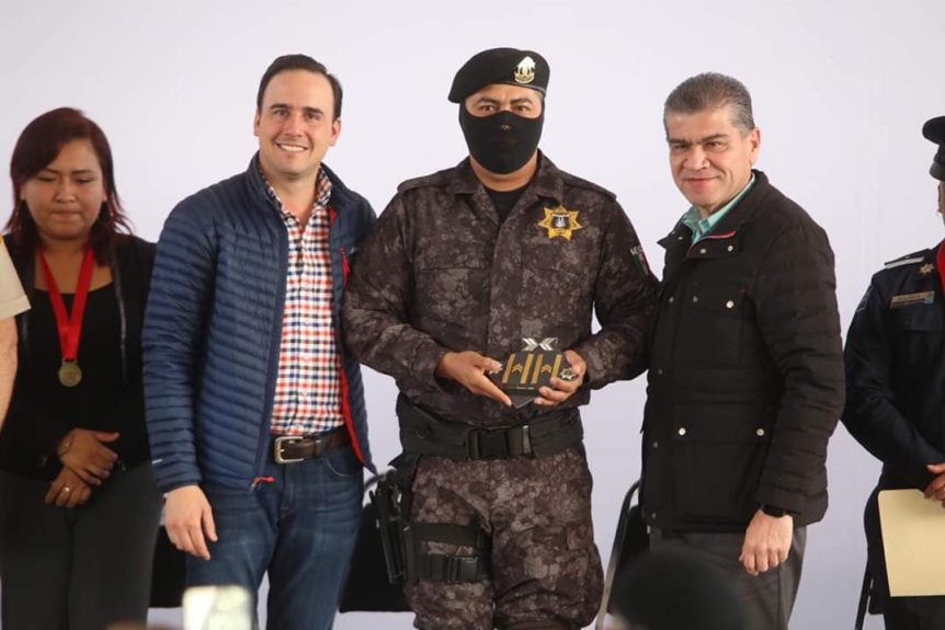 Además de la entrega de armamento, el gobernador del Estado, Miguel Ángel Riquelme Solís y el alcalde Manolo Jiménez Salinas, entregaron el Galardón “Manuel Corpus Beltrán” al Mérito Policial 2019, así como ascensos a policías que lo obtuvieron gracias a su destacado desempeño.