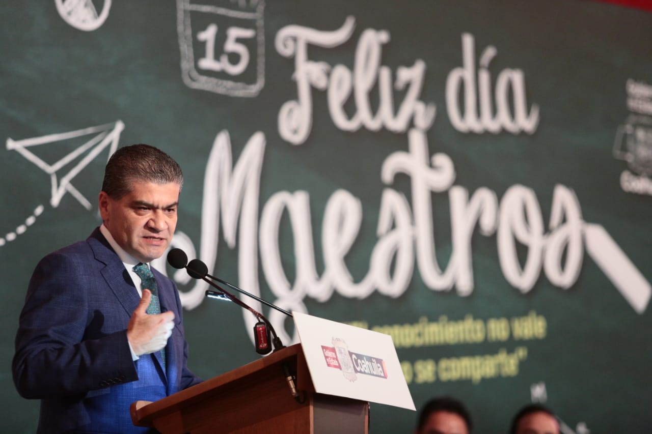 "Mi felicitación, reconocimiento y agradecimiento a todas las maestras y maestros de Coahuila, porque con ustedes he gobernado todo este tiempo y lo hemos hecho en conjunto", aseguró el Mandatario estatal.
