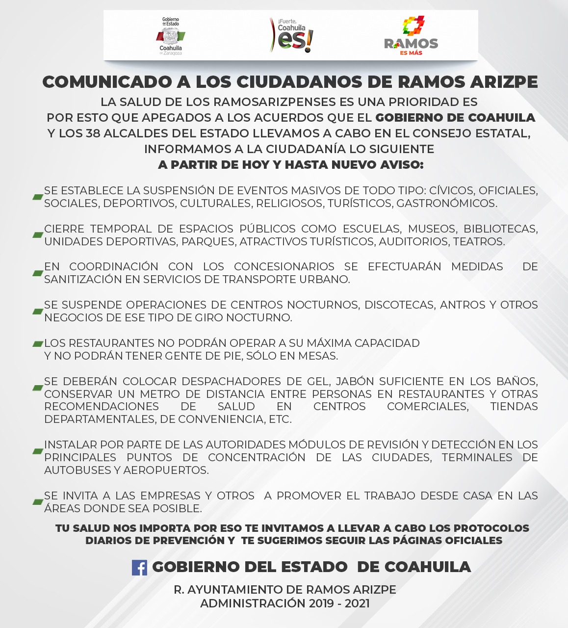 Comentó que Coahuila tiene fortaleza en el turismo a través de los eventos deportivos, gastronómicos, las tradiciones, reuniones y otros segmentos, por lo que es importante posponerlos y reprogramarlos para el verano, una vez que haya pasado la emergencia sanitaria.