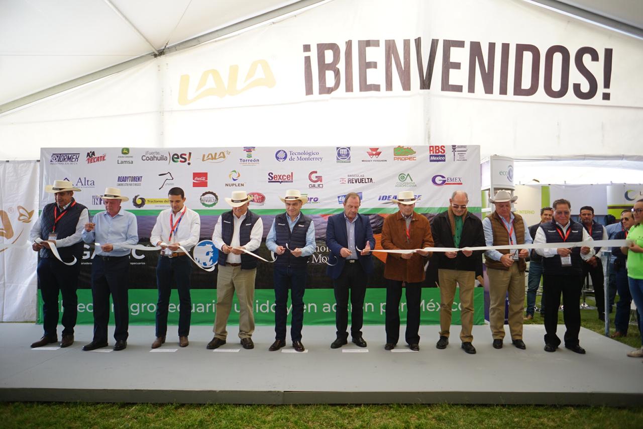 Torreón, Coahuila de Zaragoza; a 5 de Marzo de 2020.- El Gobernador de Coahuila, Miguel Ángel Riquelme Solís, cortó el listón inaugural del Encuentro Nacional de Ganaderos Lecheros y Productores Agropecuarios (ENGALEC) 2020, donde fue acompañado por Víctor Manuel Villalobos Arámbula, Secretario de Agricultura y Desarrollo Rural de México (SADER), y Gerardo González Lugo, presidente del comité organizador.
