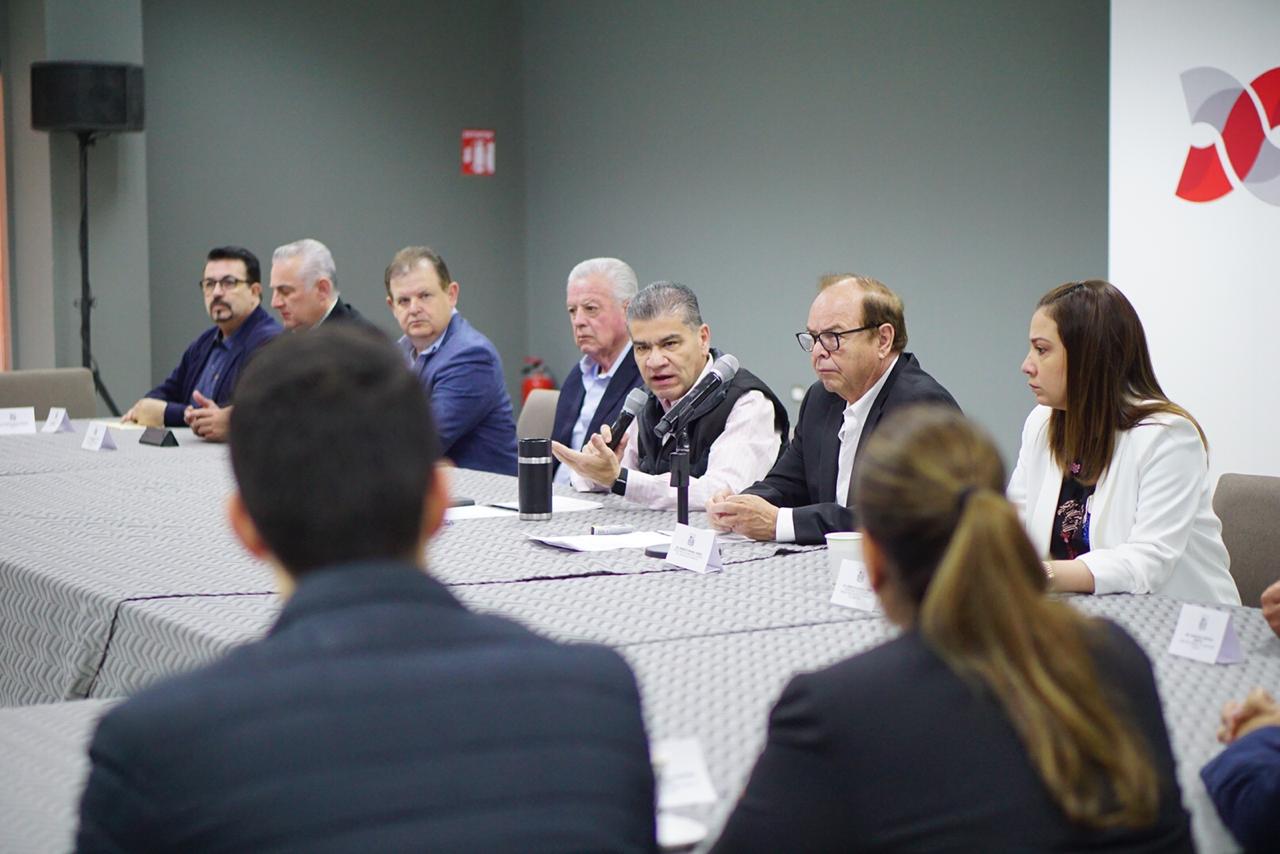También Carlos Braña Muñoz, presidente de la Cámara de la Industria de la Transformación; Ernesto Reyes Herrera, Director General del Hospital Ángeles; Francisco Barraza Barrón, Director General del Sanatorio Español; Francisco García Elizondo, coordinador del Programa de Atención de Cascos de Coronavirus, y Marco Aníbal Rodríguez, director médico de la Secretaría de Salud.