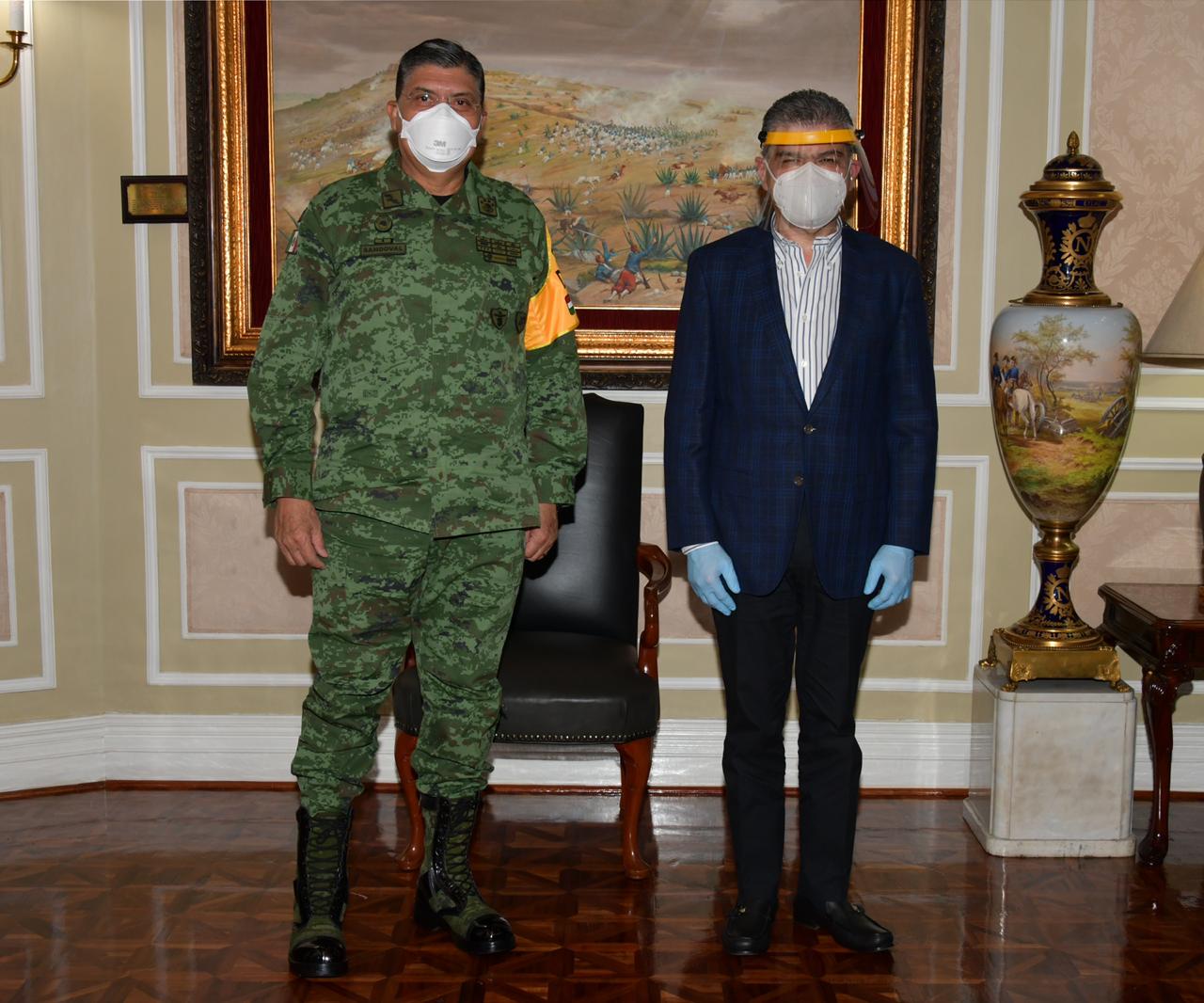 De la misma manera, Riquelme Solís agradeció al secretario Sandoval por el acompañamiento del Ejército Mexicano en las acciones que se han implementado en el territorio coahuilense derivadas de la contingencia generada por el COVID-19.