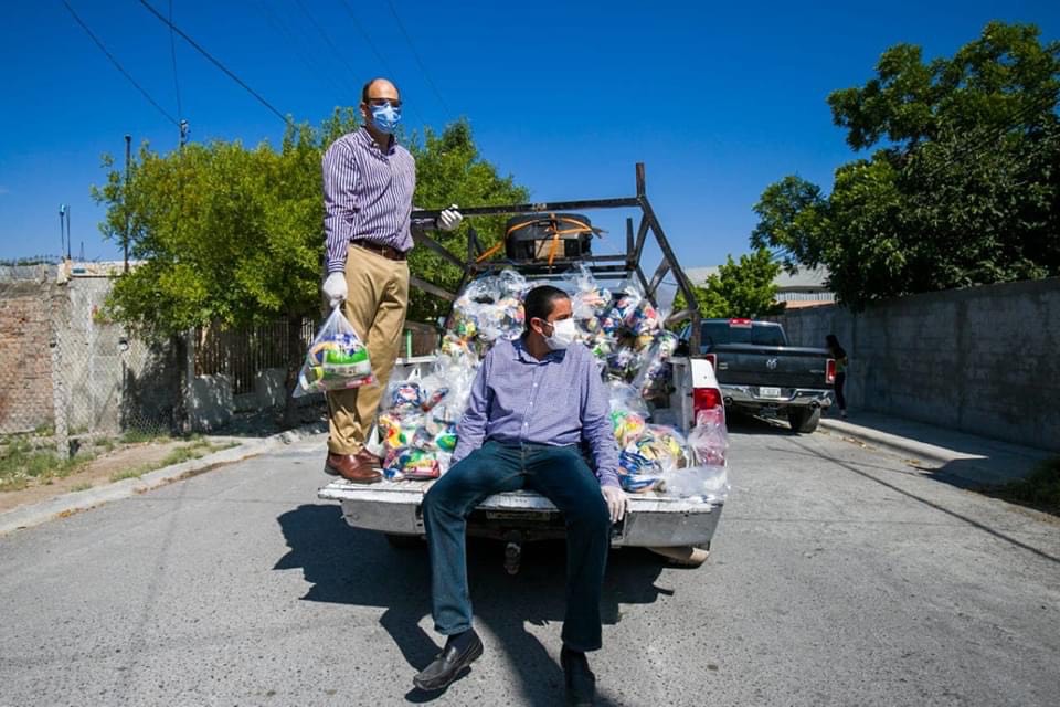 Entrega el alcalde Chema Morales y Jericó Abramo apoyos alimentarios del Gobernador Miguel Angel Riquelme Solis a las familias de la colonia La Esmeralda en Ramos Arizpe.
