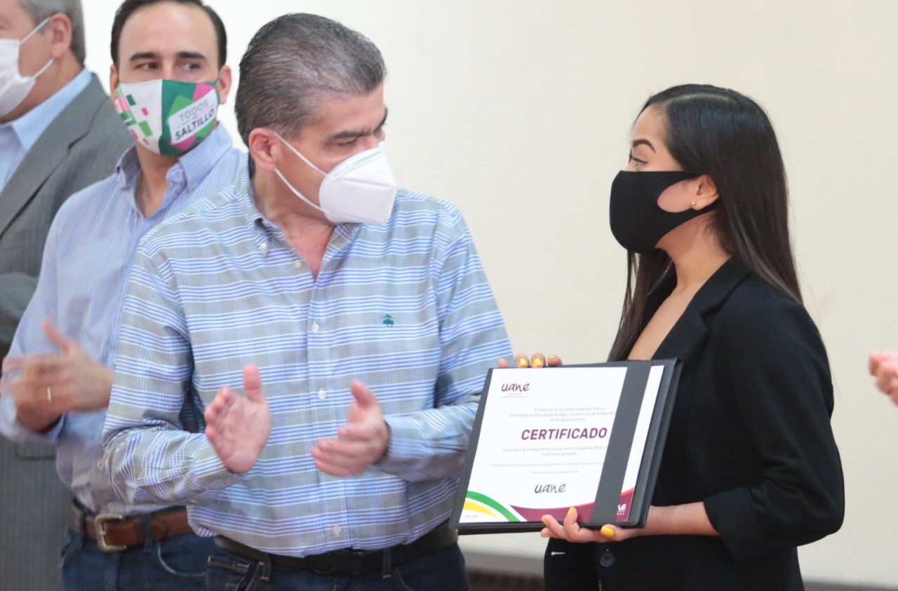 En esta ceremonia acompañaron al Gobernador, además, José María Fraustro Siller, Secretario de Gobierno; Manolo Jiménez Salinas, Alcalde de Saltillo; Jorge Eduardo Verástegui Saucedo, Rector de la UANE, y Javier Díaz González, Administrador Fiscal General.