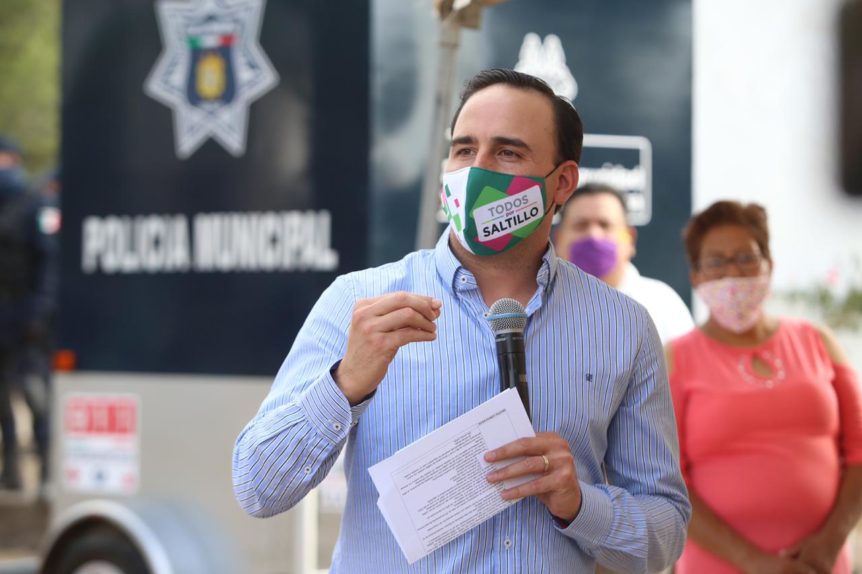 El alcalde Manolo Jiménez Salinas agradeció ese trabajo que tan solo por parte de las fuerzas municipales ha permitido el reparto de 50 mil cubrebocas a automovilistas y peatones.