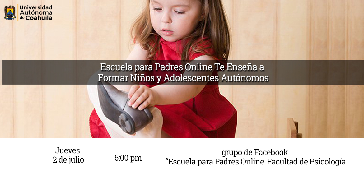SALTILLO, Coahuila, 30 de junio de 2020.- En la actualidad padres y madres tienen un gran interés por formar hijos autónomos, es decir que sean capaces de asumir las responsabilidades con ellos mismos o tomar decisiones de acuerdo a ciertos valores sociales, es por ello que la Facultad de Psicología de la Universidad Autónoma de Coahuila a través de su Departamento de Psicología Infantil impartirá el 2 de julio el tema "El niño, el adolescente y su autonomía" esto dentro del conversatorio Escuela para Padres Online que se realiza los jueves de junio y julio.