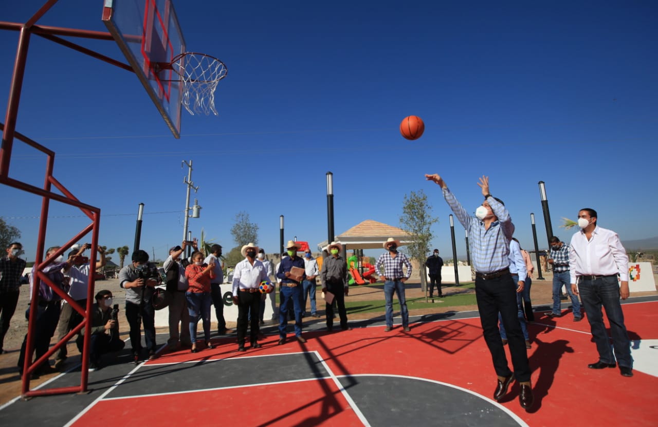 En evento celebrado en el Ejido Tortuga, del mencionado municipio, Riquelme Solís resaltó la importancia de este tipo de obras, que tienen como objetivo fortalecer la identidad del área rural y brindar espacios de esparcimiento, deporte y recreación para sus habitantes.