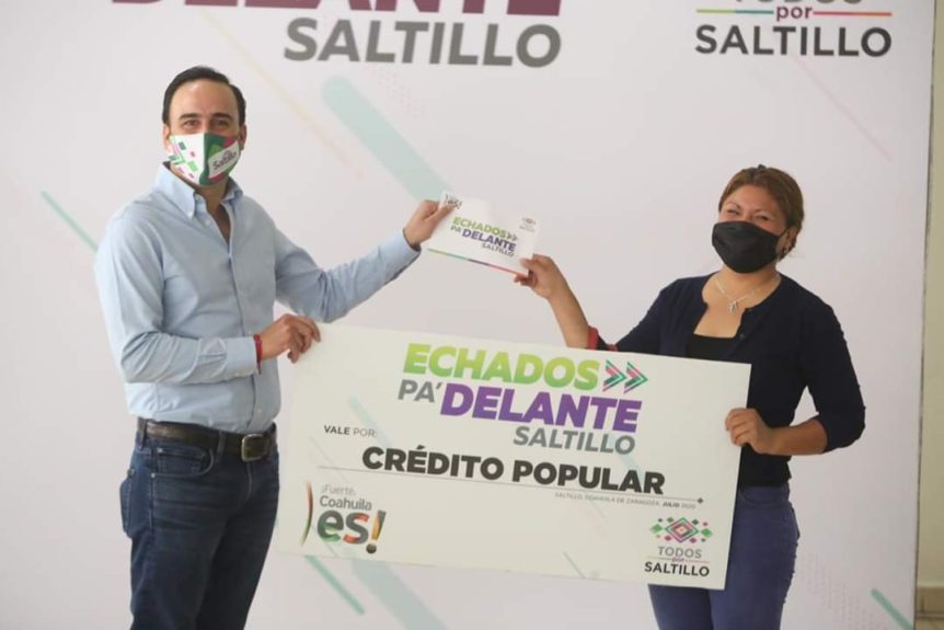 Como parte del programa “Echados Pa’ Delante”, el alcalde de Saltillo, Manolo Jiménez Salinas, dio seguimiento a la entrega de los Créditos Populares a comerciantes de la localidad, que gracias al apoyo del gobernador Miguel Ángel Riquelme Solís, podrán usarlos para la reactivación de sus micro y pequeños comercios.