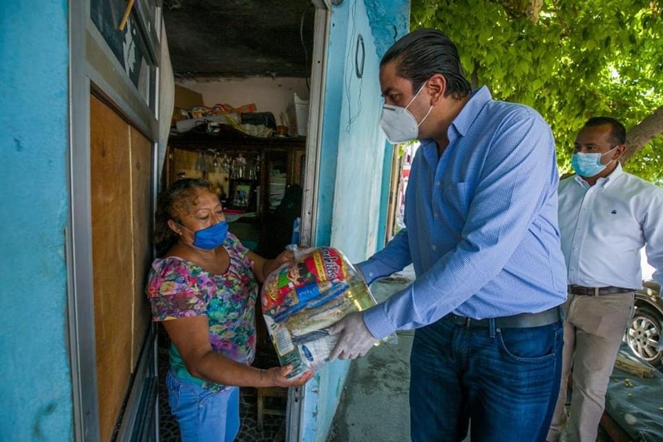 Entrega Chema Morales apoyos alimenticios casa por casa en la colonia Santos Saucedo de Ramos Arizpe, Coahuila.