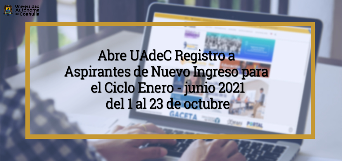 SALTILLO, Coahuila; 1 de octubre de 2020.- La Universidad Autónoma de Coahuila, a través de la Dirección de Asuntos Académicos, convoca a los aspirantes a ingresar a bachillerato y licenciatura en el semestre enero-junio 2021, a registrarse por internet a partir de hoy jueves 1 al viernes 23 de octubre de 2020, a través de la página www.admisiones.uadec.mx.