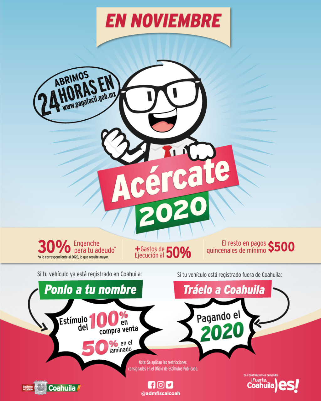 "En el caso de que tu vehículo esté registrado fuera del Estado, ¡tráelo a Coahuila! Pagando el 2020" finalizó, Díaz González.