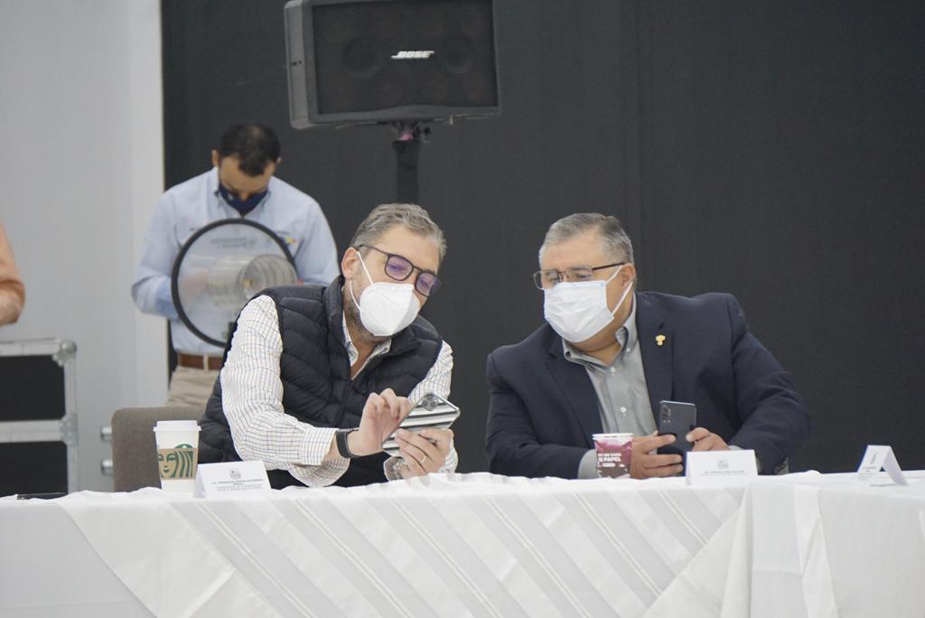 Fernando Simón Gutiérrez Pérez, titular de la Unidad de Comunicación e Imagen Institucional del Gobierno de Coahuila, y Sergio Lara Galván, Secretario del Ayuntamiento de Torreón, coordinaron esta mesa, en la que revisaron las cifras de la situación actual, la capacidad hospitalaria y los resultados del operativo del fin de semana.