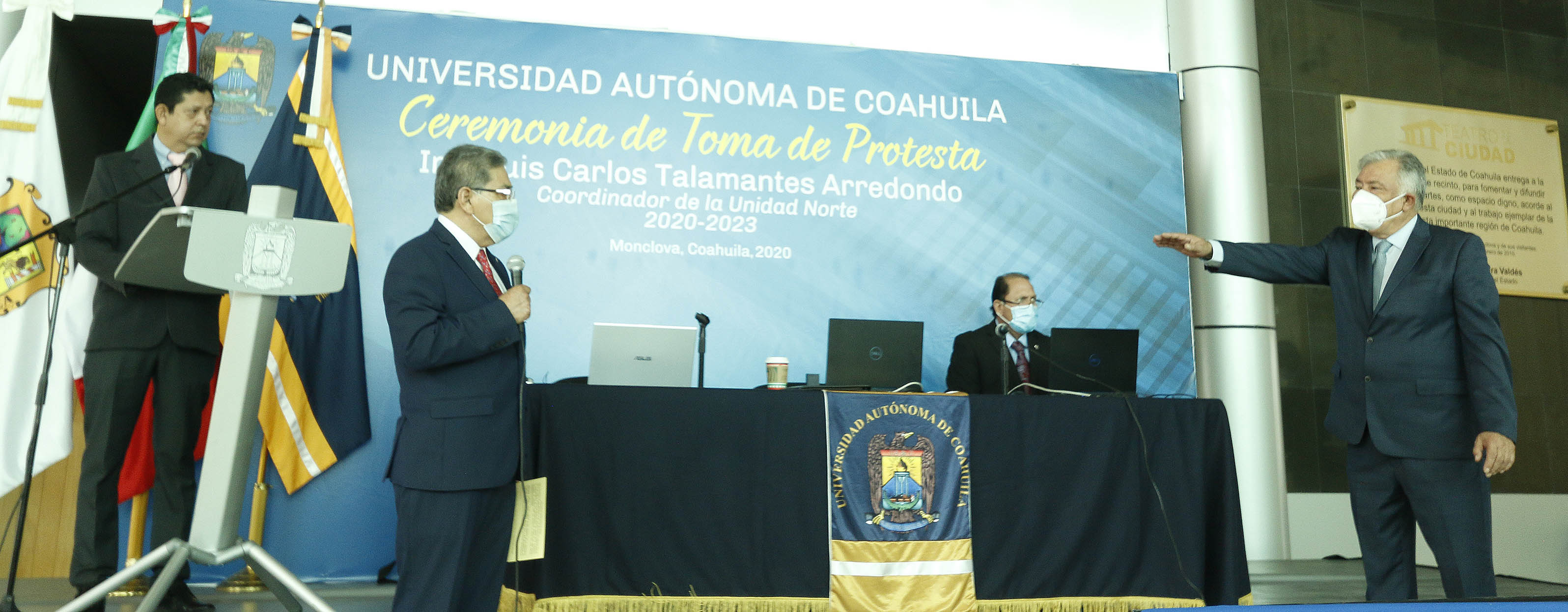MONCLOVA, Coahuila; 11 de noviembre de 2020.- En atención a la legislación universitaria, el rector de la Universidad Autónoma de Coahuila, Salvador Hernández Vélez, tomó protesta a Luis Carlos Talamantes Arredondo como nuevo Coordinador de la Unidad Norte.