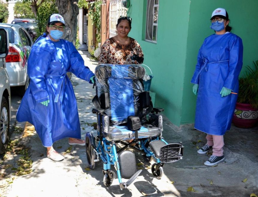 Por instrucciones del alcalde Manolo Jiménez Salinas, durante la actual contingencia de salud, a través del DIF Saltillo se lleva a cabo la entrega de aparatos ortopédicos directamente en los domicilios de las personas beneficiadas.