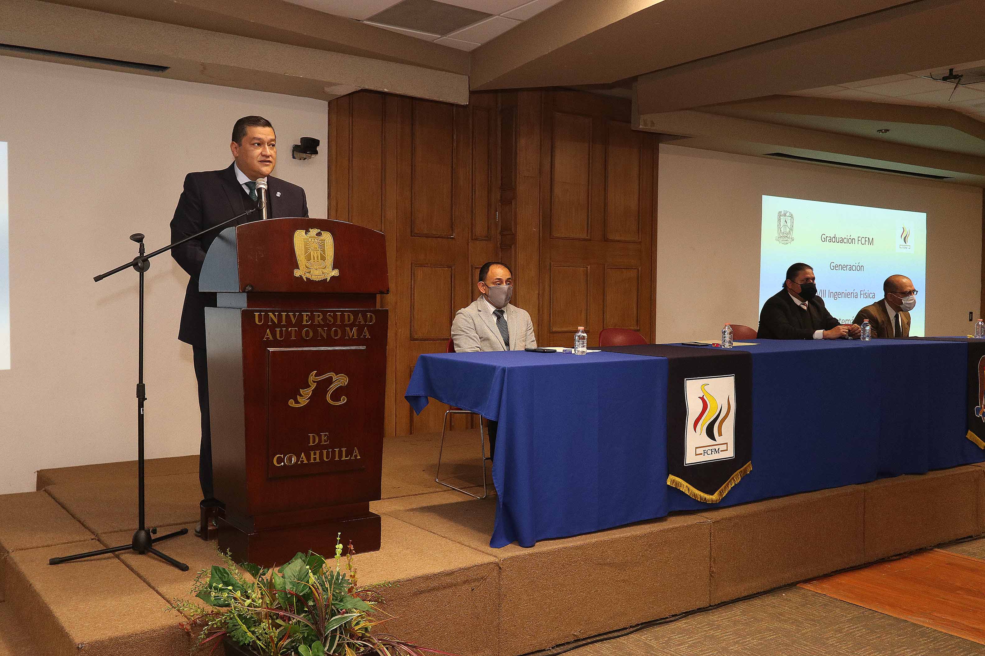 Por su parte, Manuel Antonio Torres Gomar, director de la Facultad de Ciencias Físico Matemáticas, felicitó a los graduados por alcanzar una meta más en sus vidas y concluir su formación académica como profesionistas capaces de afrontar y solucionar los retos del mercado laboral, así como con una gran calidad humana.