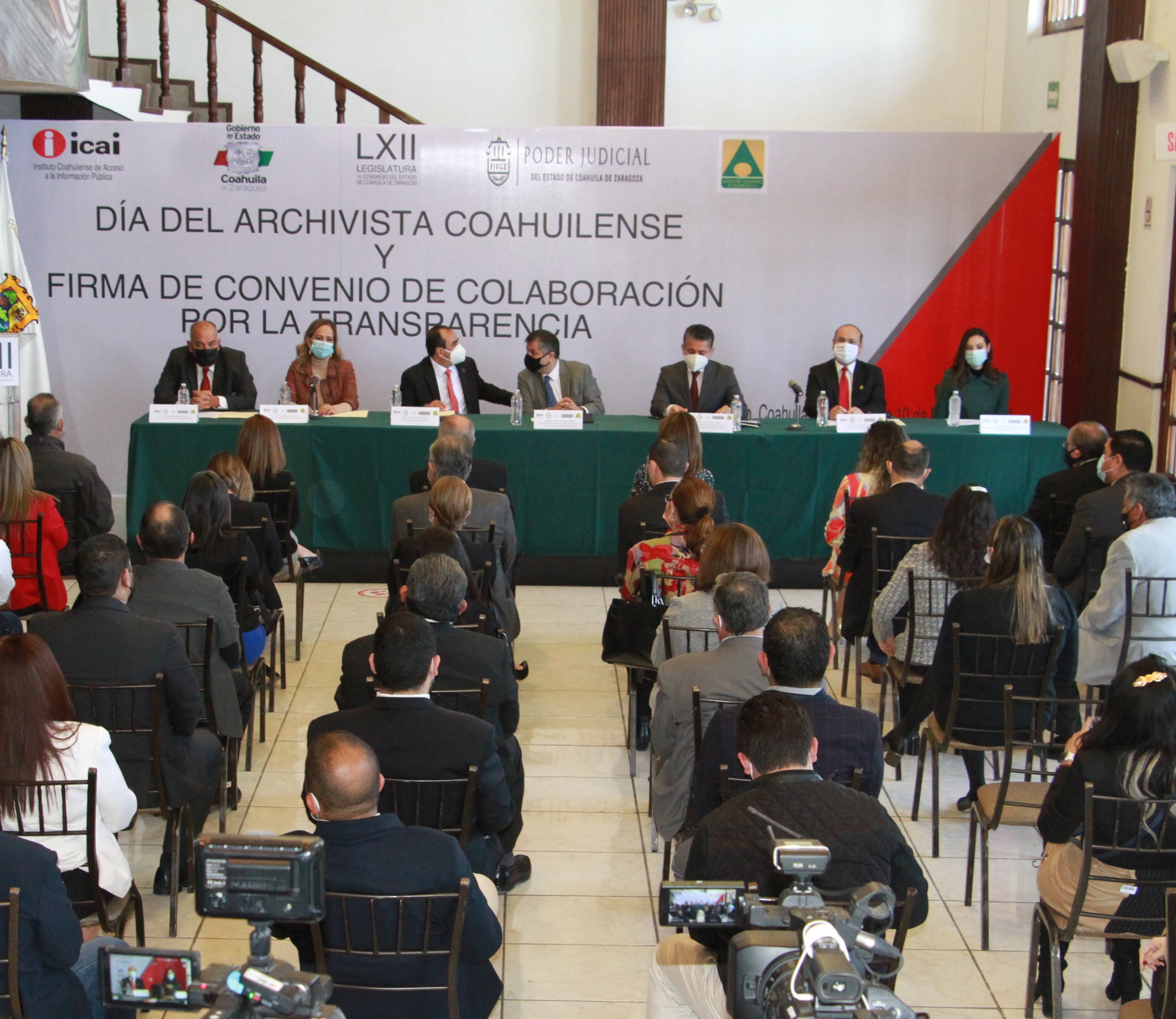 Realzaron con su presencia este evento: el magistrado Miguel Felipe Mery Ayup, Presidente del Tribunal Superior de Justicia del Estado; el maestro Lucas Martínez Sánchez, Director del Archivo General del Estado y representante del licenciado Fernando de las Fuentes Hernández, Secretario de Gobierno del Estado; la licenciada Teresa Guajardo Berlanga, Secretaria de Fiscalización y Rendición de Cuentas; la diputada Lizbeth Ogazón Nava, coordinadora de la Comisión de Transparencia y Acceso la Información y el licenciado Carlos Calderón Moller, Presidente de la Asociación Coahuilense de Archivistas.