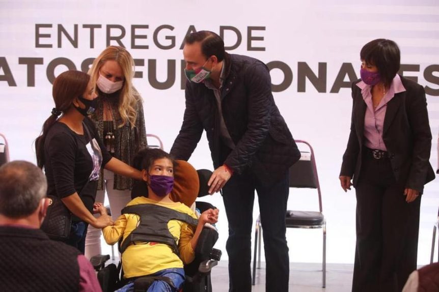 El alcalde Manolo Jiménez Salinas, acompañado por la señora Marcela Gorgón de Riquelme, presidenta honoraria del DIF Coahuila y la presidenta del DIF Municipal, Liliana Salinas Valdés, encabezaron otra entrega de aparatos funcionales como parte del eje Saltillo Incluyente, evento en el que se destacó que, a pesar de la pandemia, el Gobierno Municipal sigue apoyando a los sectores sociales que más lo necesitan.