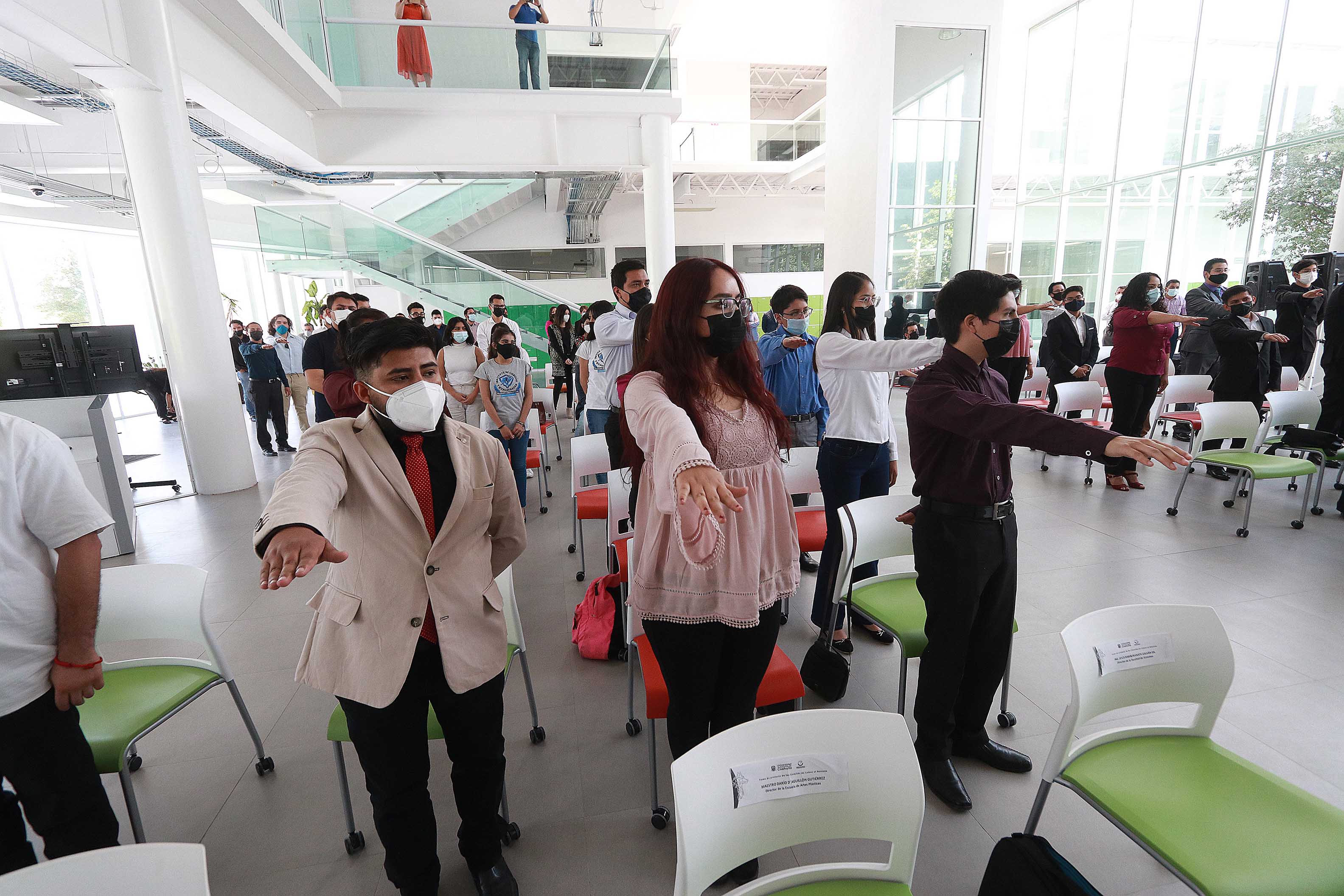Por otro lado, el representante estudiantil del comité de “Lobos al Rescate” de la Facultad de Ingeniería, José Luis Almaraz Ursua, exhortó a sus compañeras y compañeros de los distintos grupos a trabajar con compromiso y solidaridad en beneficio de las causas sociales, mientras que la alumna de la Facultad de Arquitectura, Danna González Muñoz firmó junto al Rector el acta constitutiva en representación de los Comités.