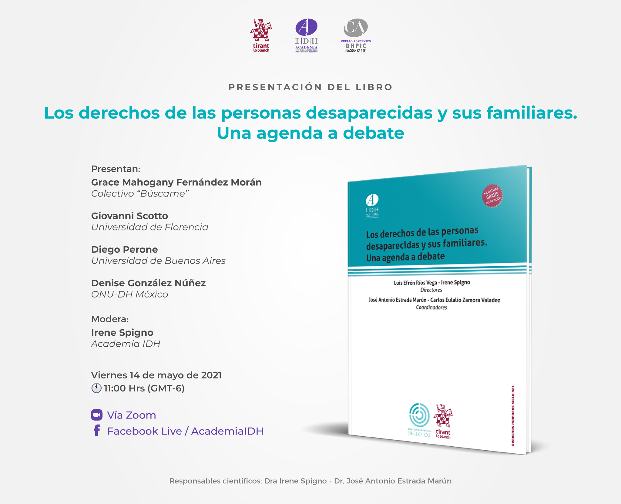 Durante el evento moderado por la directora general de la AIDH, Irene Spigno, estarán presentes algunos de los colaboradores de la obra como Grace Mahogany Fernández Morán del Colectivo “Búscame”, Giovanni Scotto de la Universidad de Florencia, Diego Perone de la Universidad de Buenos Aires y Denise González Núñez de ONU-DH México.