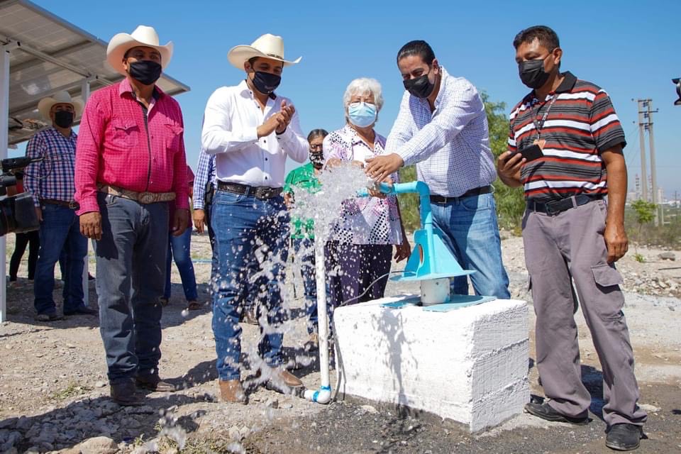Instala Chema Morales un pozo de agua equipado con paneles solares y tomas domiciliarias a familias del Ejido Ojo Caliente.