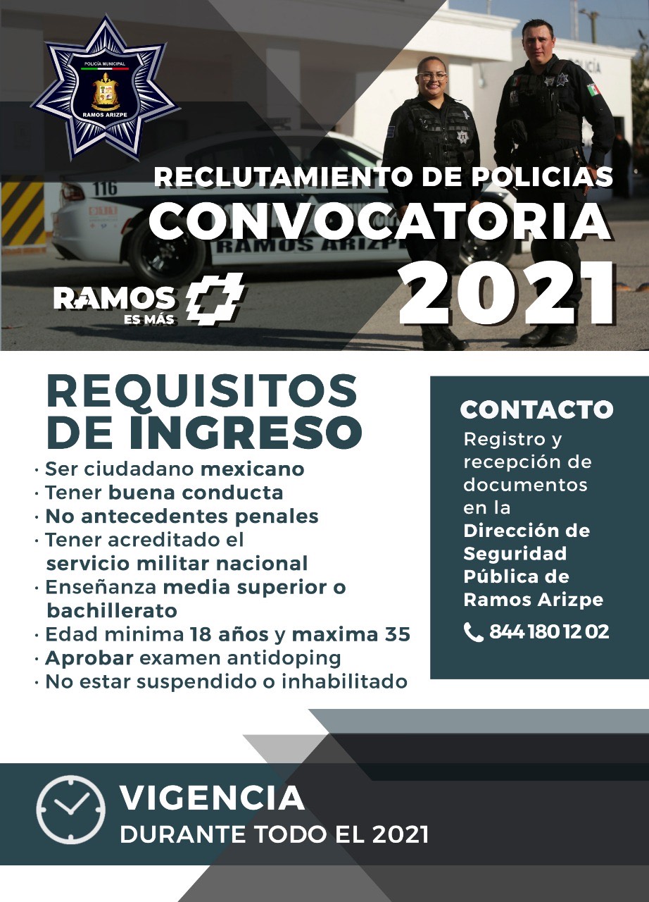Convoca reclutamiento de policías el municipio de Ramos Arizpe