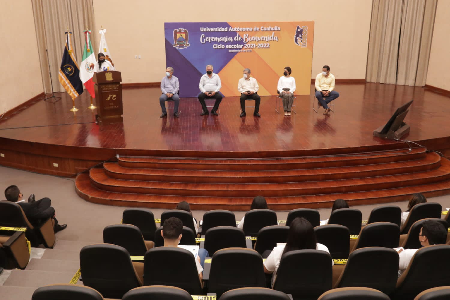 Durante la ceremonia se proyectó un video institucional con el que los alumnos de nuevo ingreso tuvieron la oportunidad de conocer más sobre la misión, visión, valores e historia de la Universidad Autónoma de Coahuila, que data desde el año 1957, siendo en 1973 cuando obtuvo su autonomía.