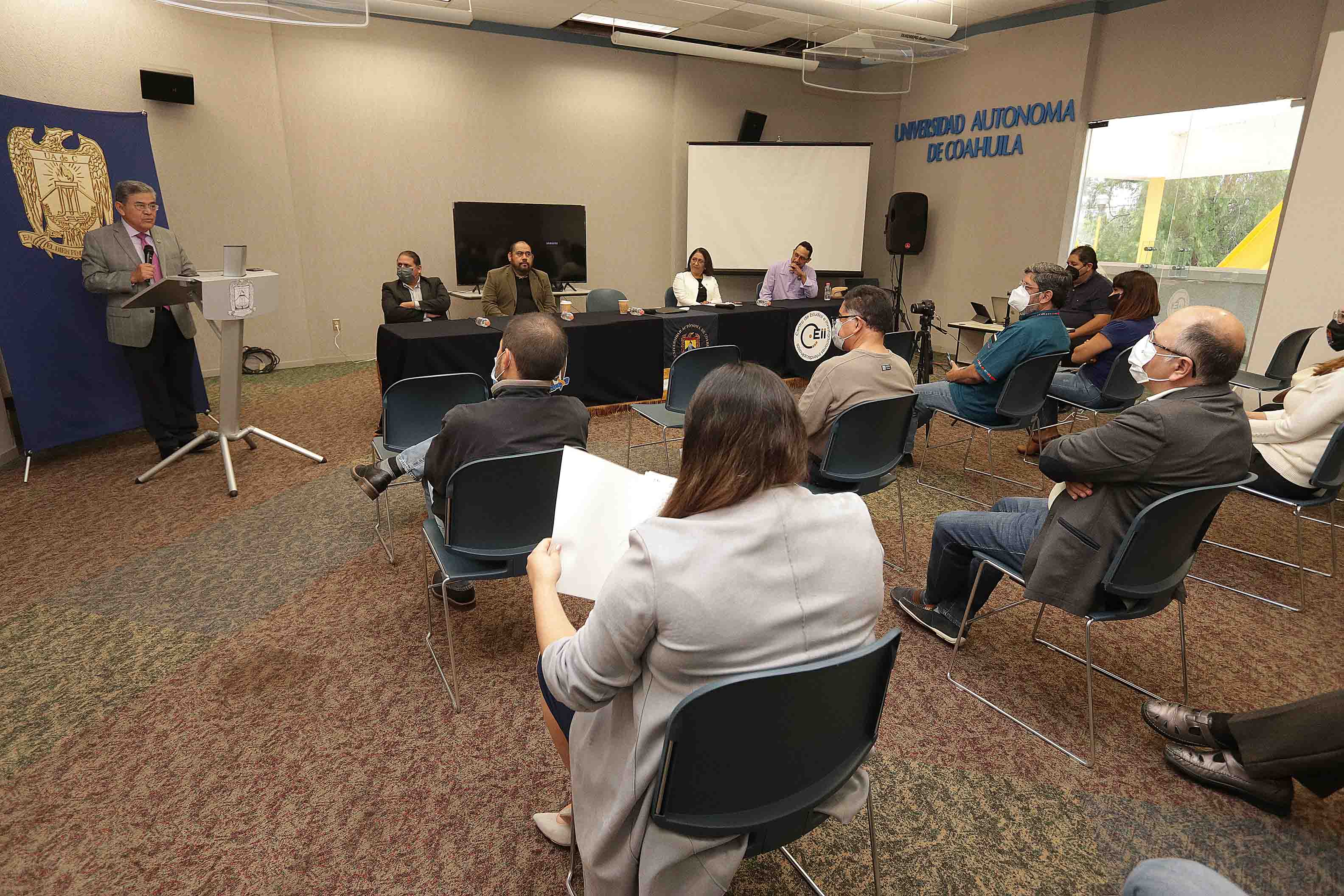 SALTILLO, Coahuila. 5 de octubre de 2021.- Para celebrar el primer aniversario del Doctorado en Ciencias que imparte el Centro de Estudios e Investigaciones Interdisciplinarios (CEII) de la Universidad Autónoma de Coahuila, el rector Salvador Hernández Vélez impartió la conferencia magistral “Retos en la Educación Superior” de manera híbrida, en la Sala de Videoconferencias de la Infoteca Unidad Camporredondo y por medio de Microsoft Teams.