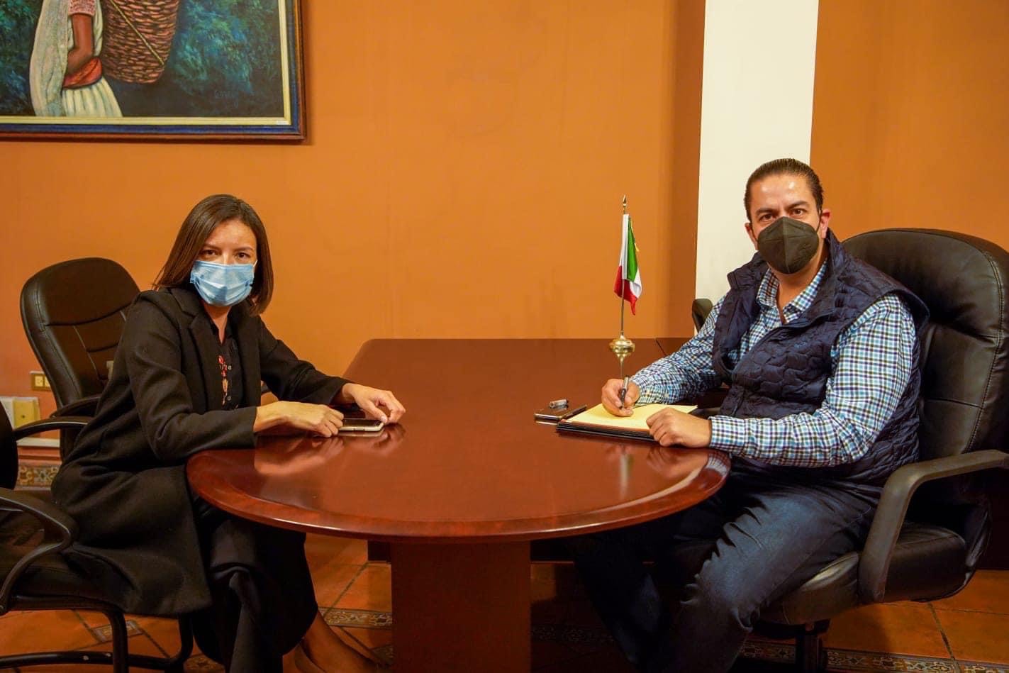 - Reunión de Chema Morales conAna Sofía Rodríguez, coordinadora general de difusión y patrimonio cultural de la U.A. de C. con motivo de la próxima firma de convenio de continuación de los trabajos del entorno a la Capilla de Santa María del Rosario.