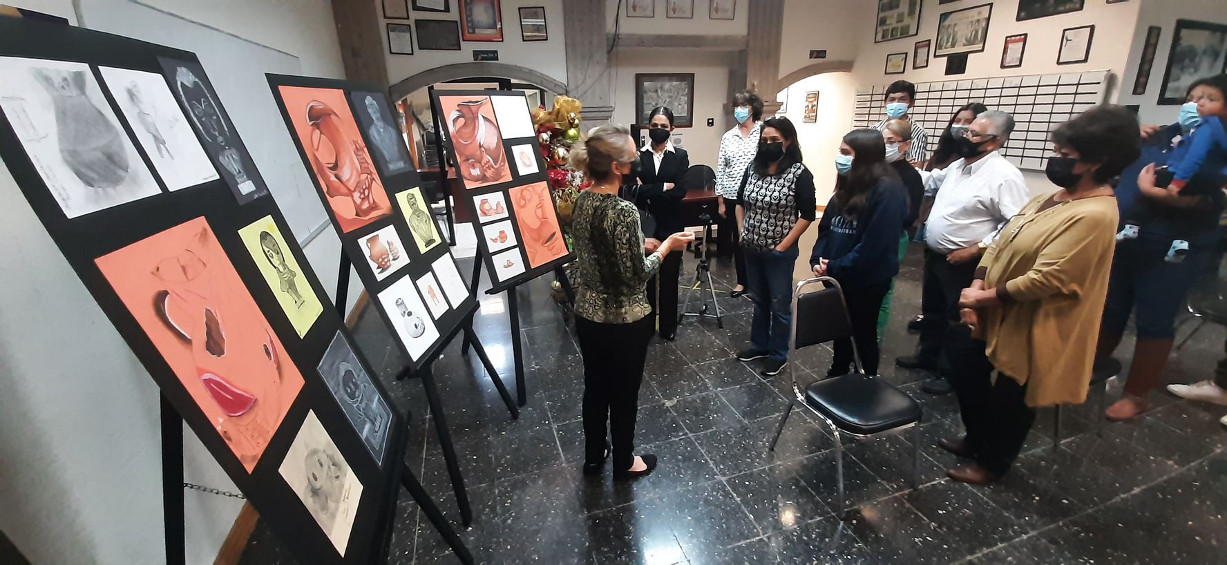 La muestra inició el pasado miércoles 1 de diciembre de 2021 y la coordinadora general de Difusión y Patrimonio Cultural, Ana Sofía Rodríguez Cepeda, acompañada por el titular del departamento de Grupo y Talleres, Ricardo Rodríguez, la subcoordinadora de Patrimonio Cultural, Maribel Lugo y del subcoordinador de Difusión Cultural, David Corona, destacó la importancia de la labor que se realiza desde el departamento de Grupos y Talleres, ya que en sus espacios, no sólo se adquieren conocimientos académicos, sino que se contribuye a la formación y se alimenta el espíritu además de promover el arte en la Universidad.
