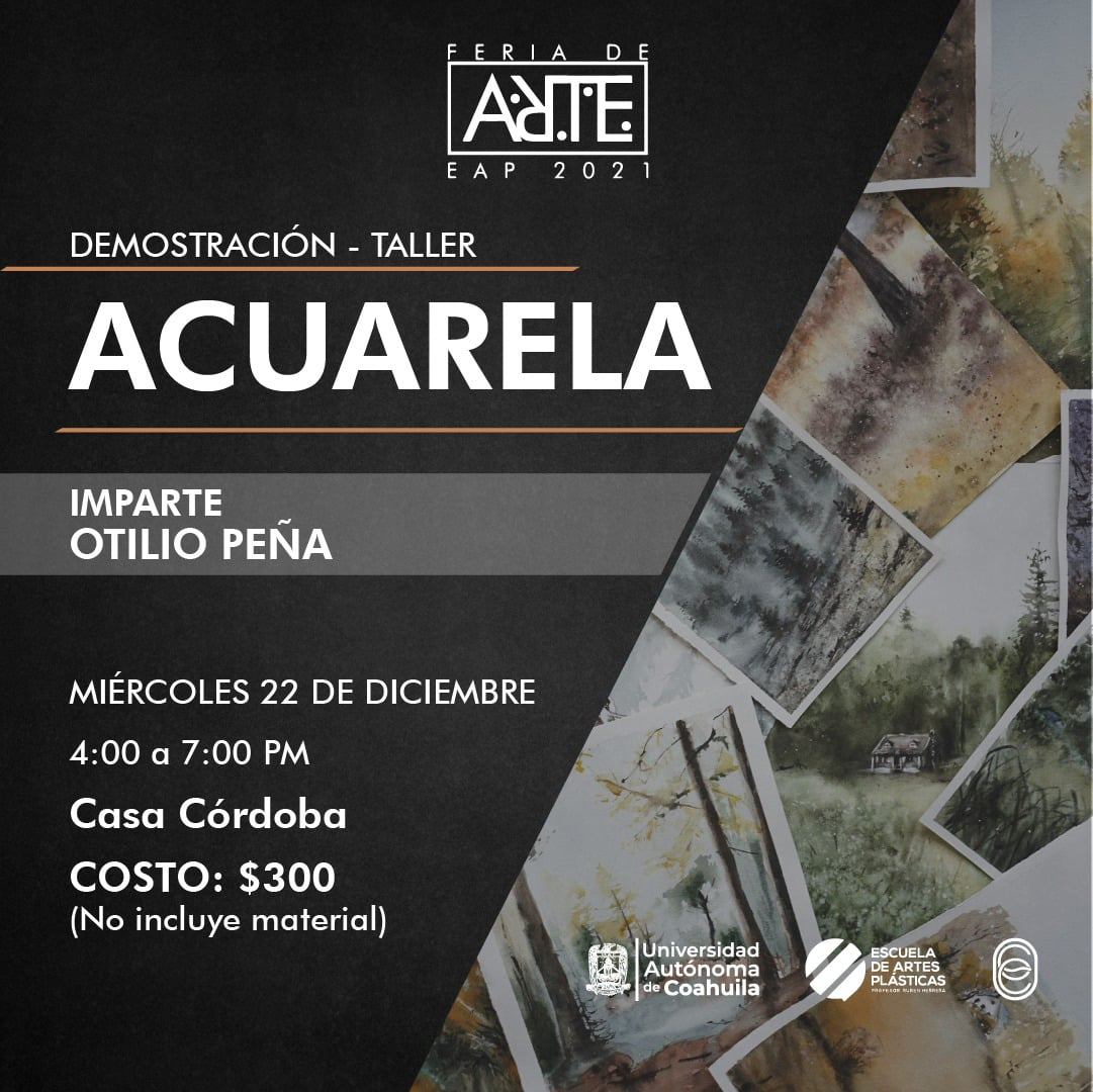 Por otro lado, el miércoles 22 de diciembre de 16:00 a 19:00 horas se desarrollará demostración y taller de “Acuarela” a cargo del Mtro. Otilio Peña, con un costo de $300.00 pesos (no incluye material), también tendrá como sede Casa Córdoba.