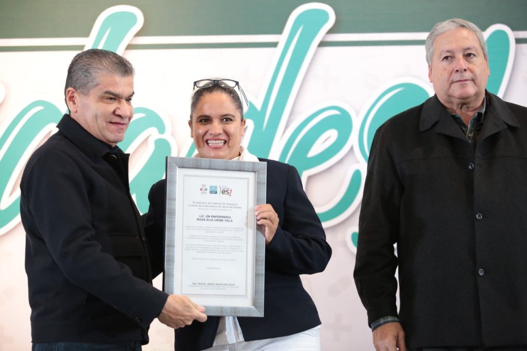 Riquelme Solís reconoció que las enfermeras y enfermeros han contribuido de manera decisiva a que Coahuila sea uno de los estados que han recobrado su dinamismo económico y la totalidad de los empleos perdidos durante la fase crítica de la pandemia.