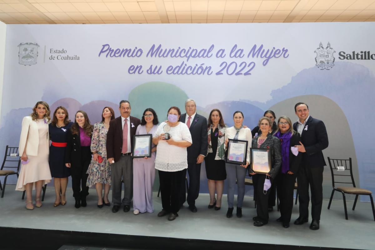 Saltillo, Coahuila de Zaragoza, a 8 de marzo de 2022.- En el marco de la conmemoración del Día Internacional de la Mujer, el alcalde José María Fraustro Siller entregó el Premio Municipal a la Mujer a la señora Irma Aguiñaga Gómez, quien hace 35 años fundó el Refugio de los Necesitados, donde brindan alimento, protección y hospedaje para los más desprotegidos.Asimismo, entregó tres reconocimientos especiales a Reyna Elizabeth Rodríguez Pérez, académica de la Universidad Autónoma de Coahuila quien trabaja con enfoque de género; a Nuevas Opciones de Vida, A.C. por su apoyo a mujeres víctimas de violencia; y a Lizeth Anahí Gómez Morales, primera saltillense en participar en el International Air and Space Program en la NASA.