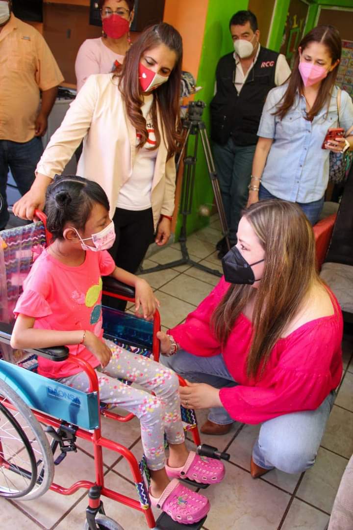 Durante la visita, las autoridades fueron recibidas por la Señora Gabriela Carmona, madre de la menor, quien había solicitado el apoyo para su hija, ya que sus recursos económicos son limitados y la adquisición de esta silla de ruedas y colchoneta para terapias en casa, era casi imposible.