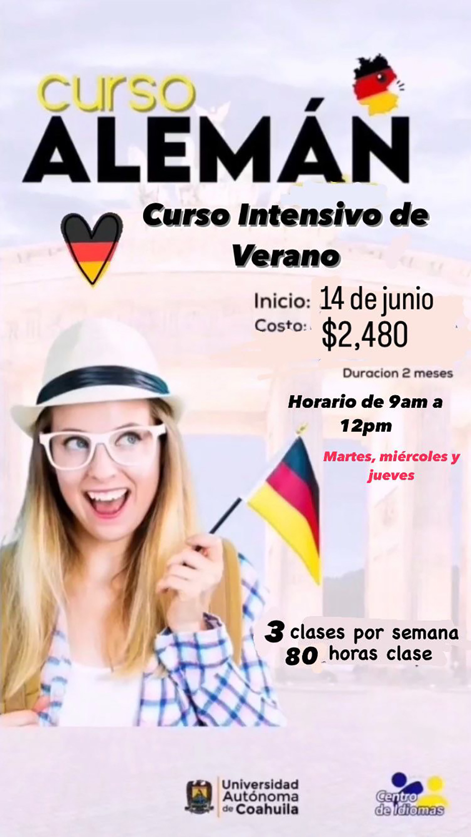 SALTILLO, Coahuila. 26 de mayo de 2022.- La Universidad Autónoma de Coahuila a través del Centro de Idiomas Unidad Saltillo, invita a la comunidad universitaria, egresados y personas externas mayores de 15 años, a inscribirse al Curso Intensivo del idioma alemán, que dará inicio el próximo 14 de junio y tendrá una duración de dos meses.