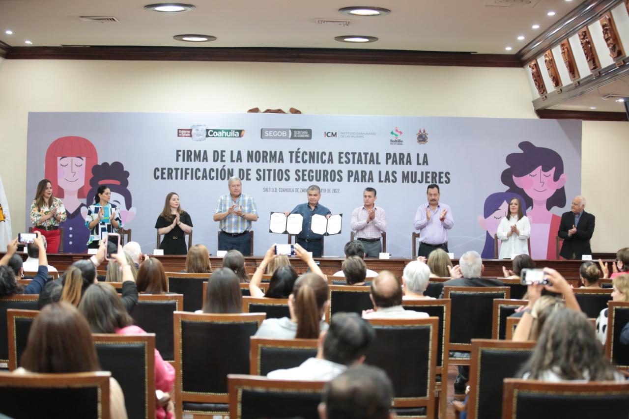 Asimismo, reiteró su exhorto a todas las instituciones educativas de Educación Superior, a cámaras empresariales y a agrupaciones de la sociedad civil, a lograr la Certificación como Sitios Seguros para las Mujeres de Coahuila.