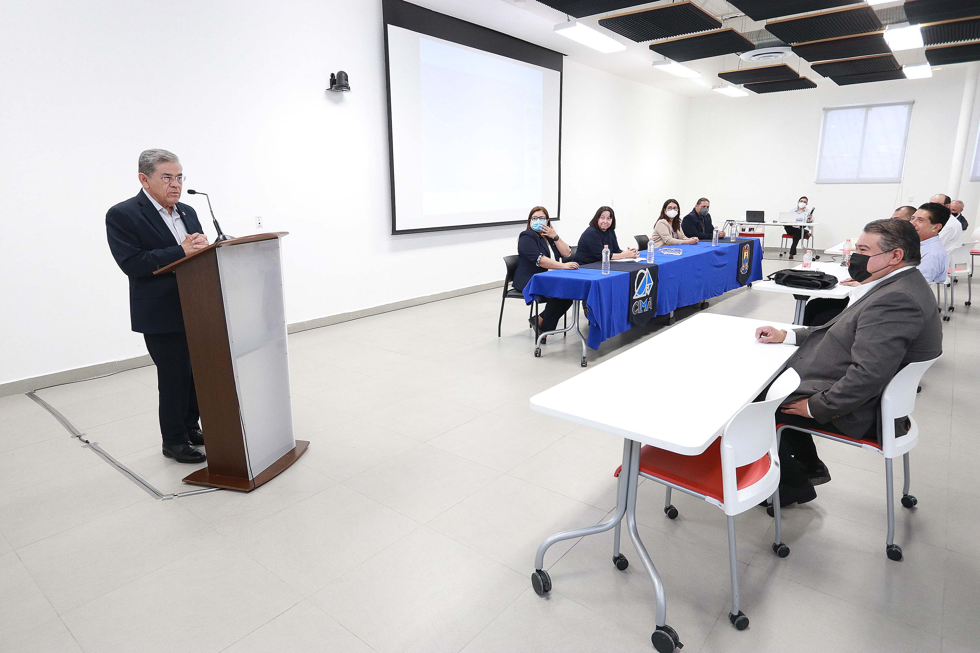 Asistieron a la Sala de Conferencias 1 de la Infoteca Campus Arteaga, la presidenta del MexSIAM, Úrsula Iturrarán Viveros, de la Facultad de Ciencias de la Universidad Nacional Autónoma de México; la vicepresidenta, Mayra Núñez López, del Instituto Tecnológico Autónomo de México; la directora del CIMA, Irma Delia García Calvillo, y el coordinador de Unidad Saltillo, Julio Saucedo Zul.