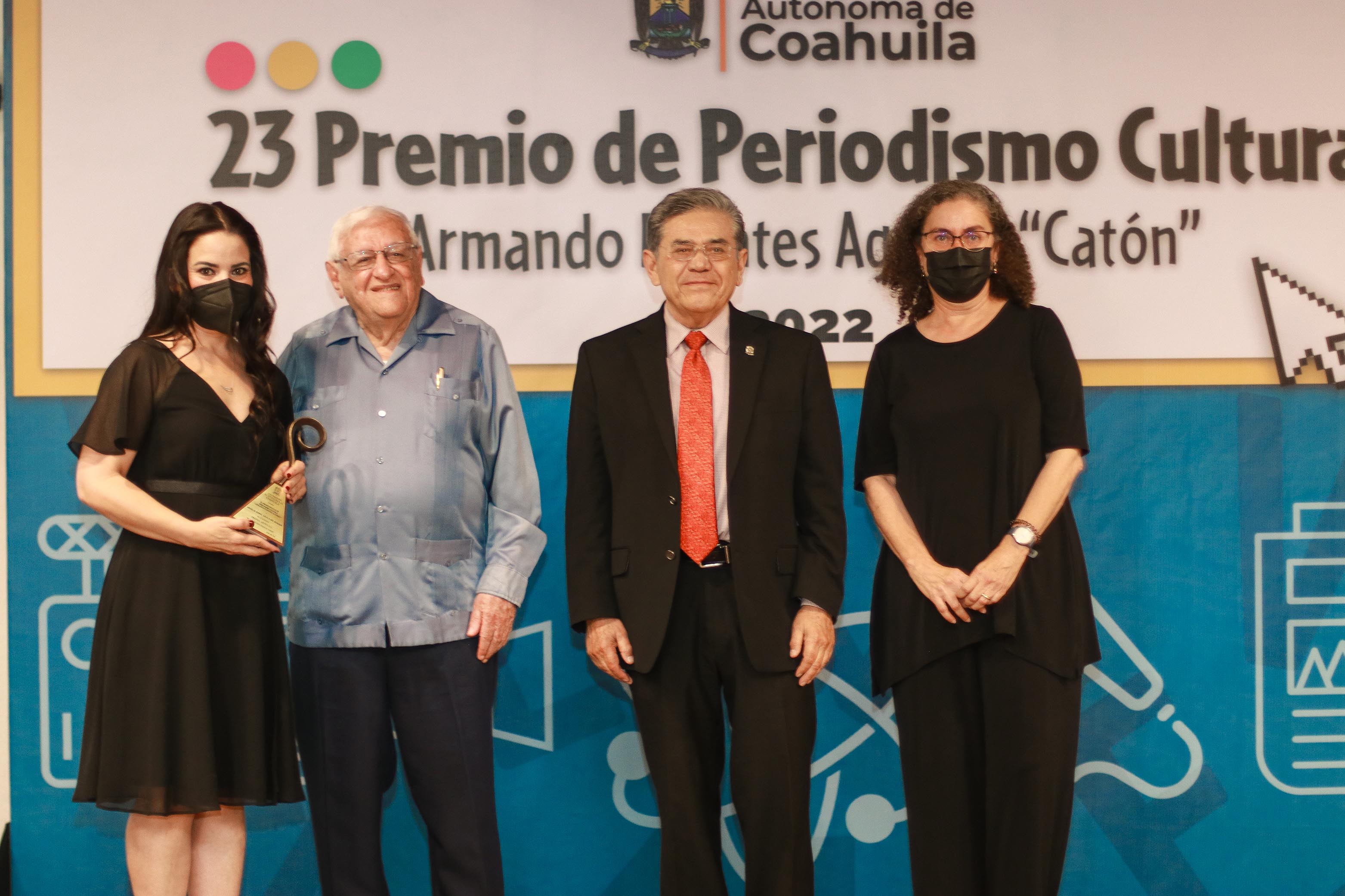 SALTILLO, Coahuila. 22 de junio de 2022.- Al reconocer el trabajo de periodistas cuyos proyectos abordan con propósitos creativos, críticos y reproductivos la promoción y difusión de las distintas manifestaciones culturales y artísticas del ser humano, este miércoles la Universidad Autónoma de Coahuila llevó a cabo la entrega del Premio de Periodismo Cultural Armando Fuentes Aguirre “Catón” en su edición XXIII.
