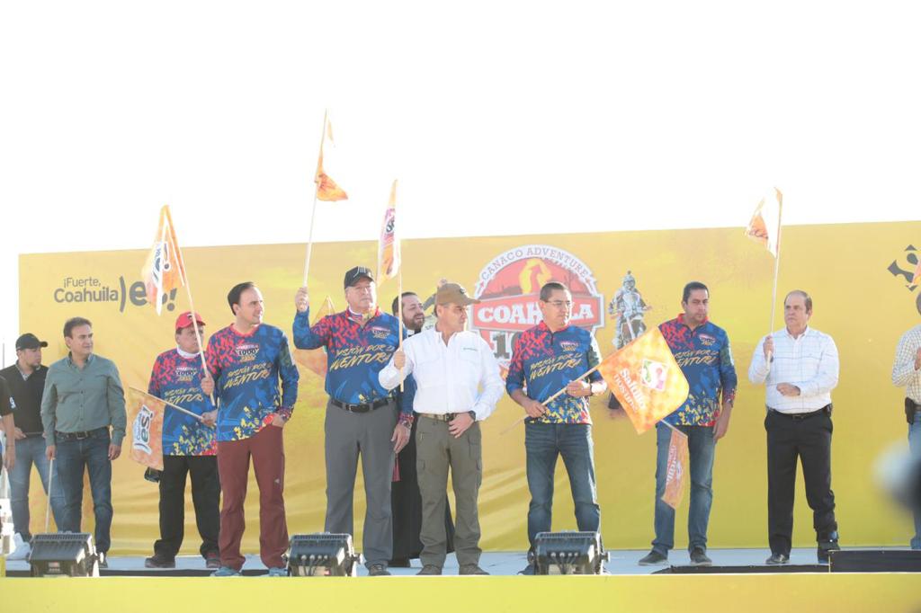 El evento deportivo tuvo un arranque simultáneo en tres municipios: en Saltillo, con el banderazo del Gobernador; en Piedras Negras se contó con la representación de la Secretaria de Turismo y Desarrollo de Pueblos Mágicos, Azucena Ramos Ramos; y en Torreón con el titular de Comunicación e Imagen Institucional del Gobierno del Estado, Fernando Simón Gutiérrez Pérez.