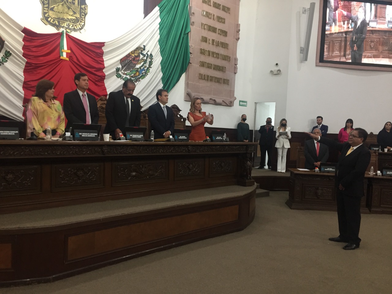 Concluida la votación, el Presidente de la Mesa Directiva, Diputado Francisco Javier Cortez Gómez, procedió a tomar la protesta de ley al C. Manuel Ramírez Briones como Auditor Superior del Estado, quien durará en el cargo ocho años contados a partir del momento en que rindió su protesta de Ley ante el Pleno del Congreso.