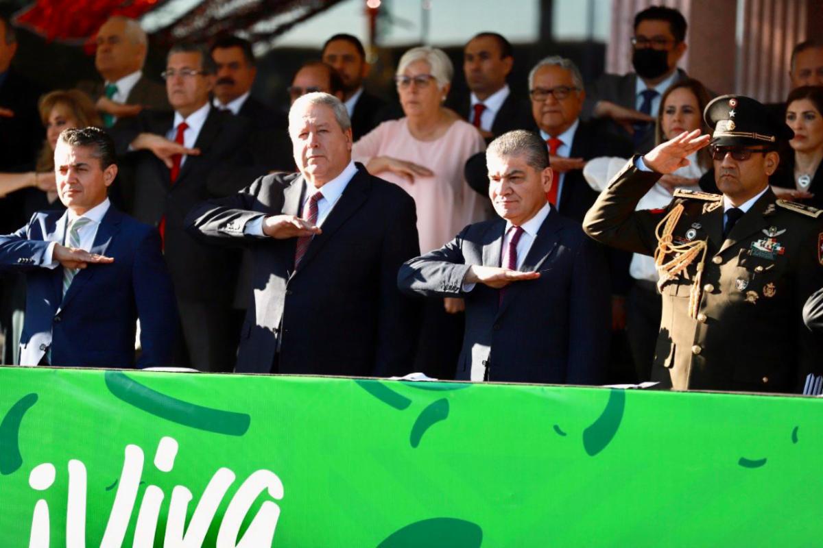 “Hay una fortaleza económica, en seguridad pública y generación de empleo, somos un estado con salud y reactivación económica sólida, todo gracias al trabajo en conjunto”, mencionó Chema Fraustro quien acompañó al gobernador Miguel Ángel Riquelme Solís al desfile que transitó por el bulevar Francisco Coss, frente a Presidencia Municipal.