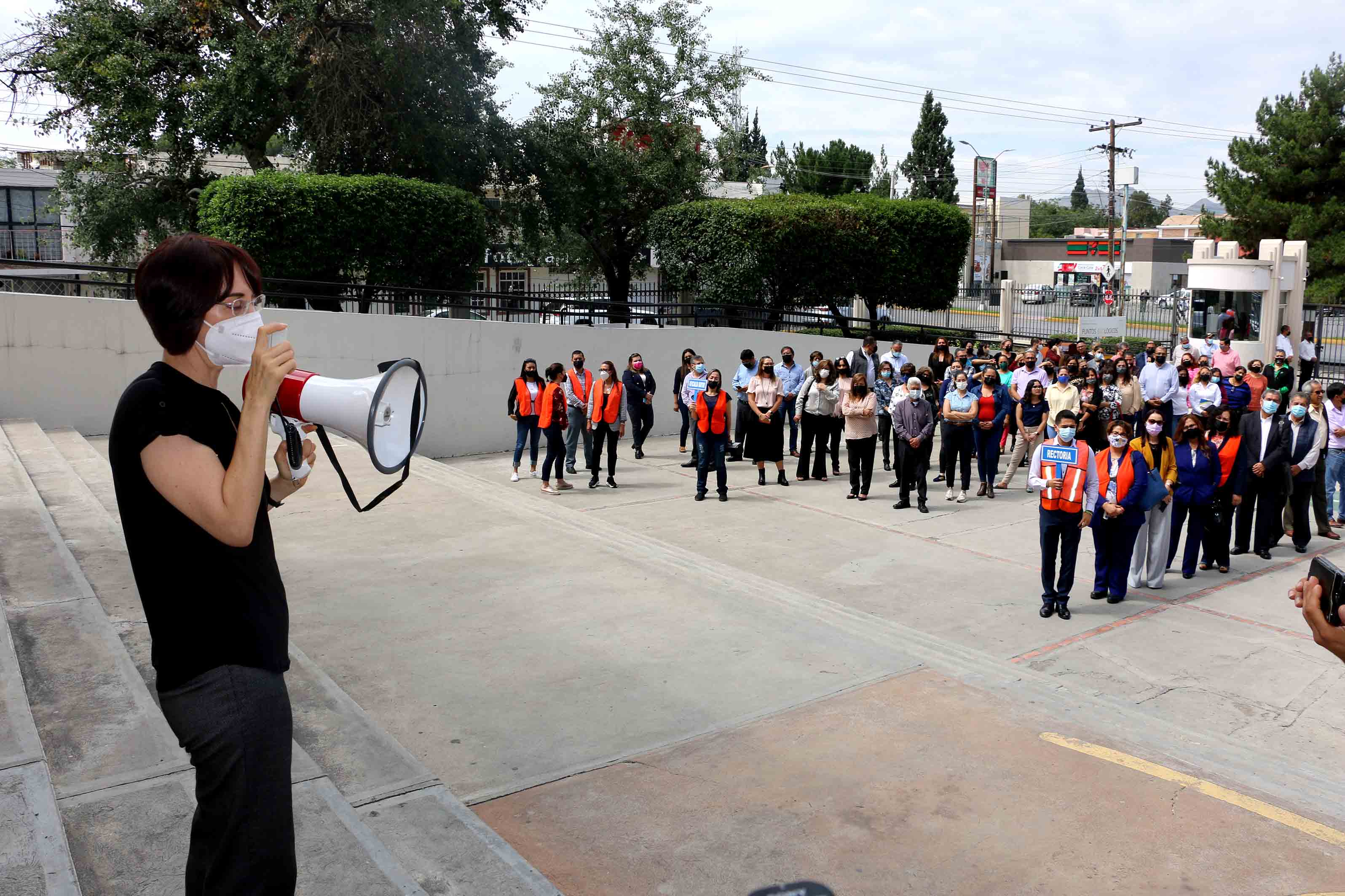 Beatriz Padilla Villareal, coordinadora de Protección Civil Universitaria, destacó la importancia de que el personal conozca el protocolo de evacuación en caso de emergencia, con el fin de promover la prevención y practicar el sistema de manera adecuada y coordinada en caso de que se presente alguna emergencia.