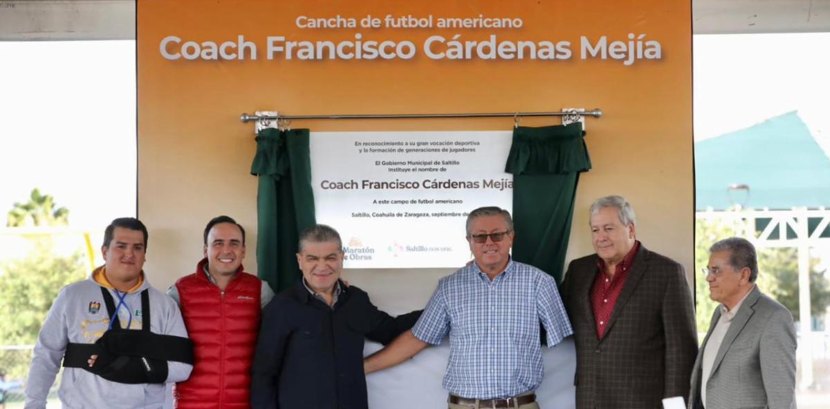 En el evento se informó que el campo de americano llevará el nombre de “Coach Francisco Cárdenas Mejía”, en homenaje a quien ha sido un impulsor de ese deporte en Saltillo y quien ha formado a generaciones de jugadores.