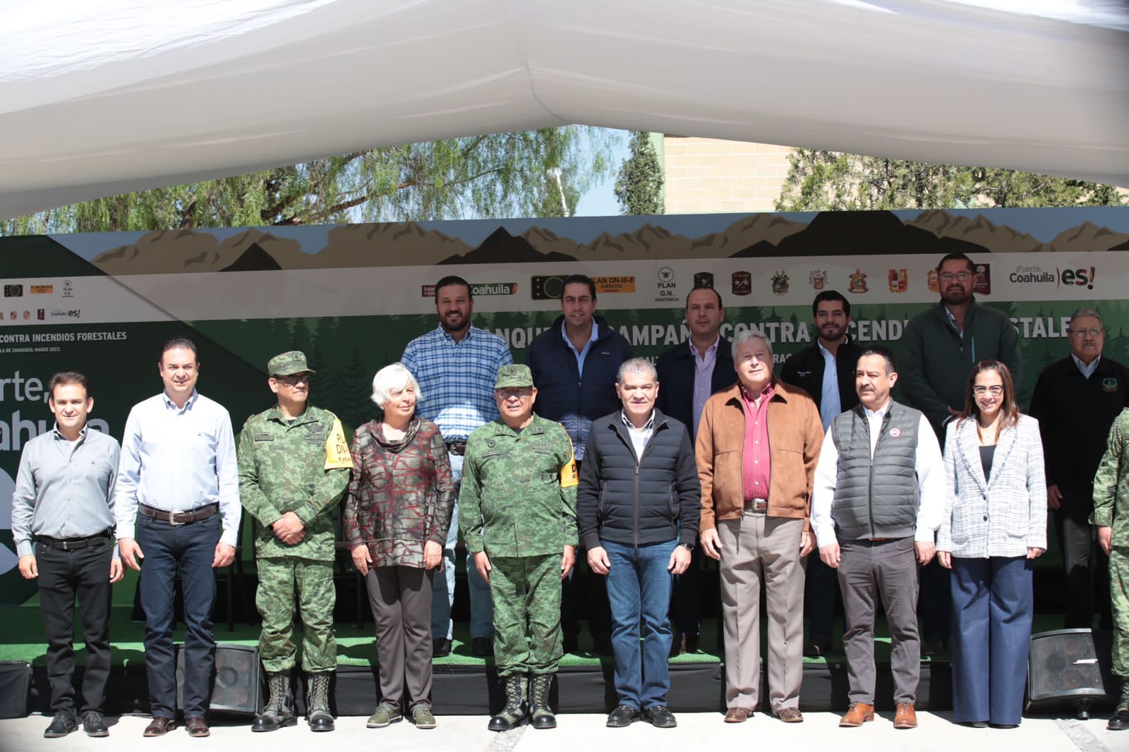 Saltillo, Coahuila de Zaragoza; a 15 de Marzo de 2023.- El gobernador Miguel Ángel Riquelme Solís encabezó la ceremonia de arranque de la Campaña Contra Incendios Forestales 2023, en donde, a nombre del Pueblo y del Gobierno de Coahuila, refrendó su reconocimiento, gratitud y admiración, por su entrega esfuerzo y dedicación a las y los brigadistas de los tres órdenes de Gobierno.