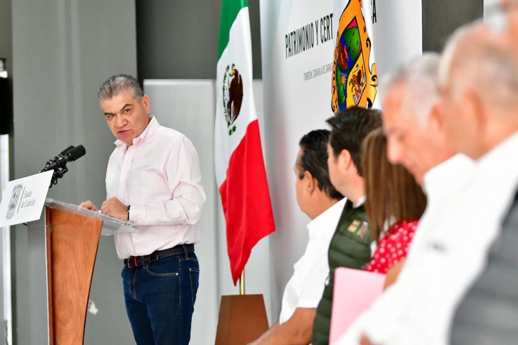Torreón, Coahuila de Zaragoza; 17 de Abril de 2023.- El Gobierno de Coahuila y el Municipio de Torreón establecen estrategia en conjunto para el patrimonio y certeza jurídica de las y los ciudadanos.En evento celebrado ante familias, el gobernador Miguel Ángel Riquelme Solís expresó que quienes tramitan legalmente sus escrituras se convierten en dueños de ese pedazo de tierra de Coahuila.