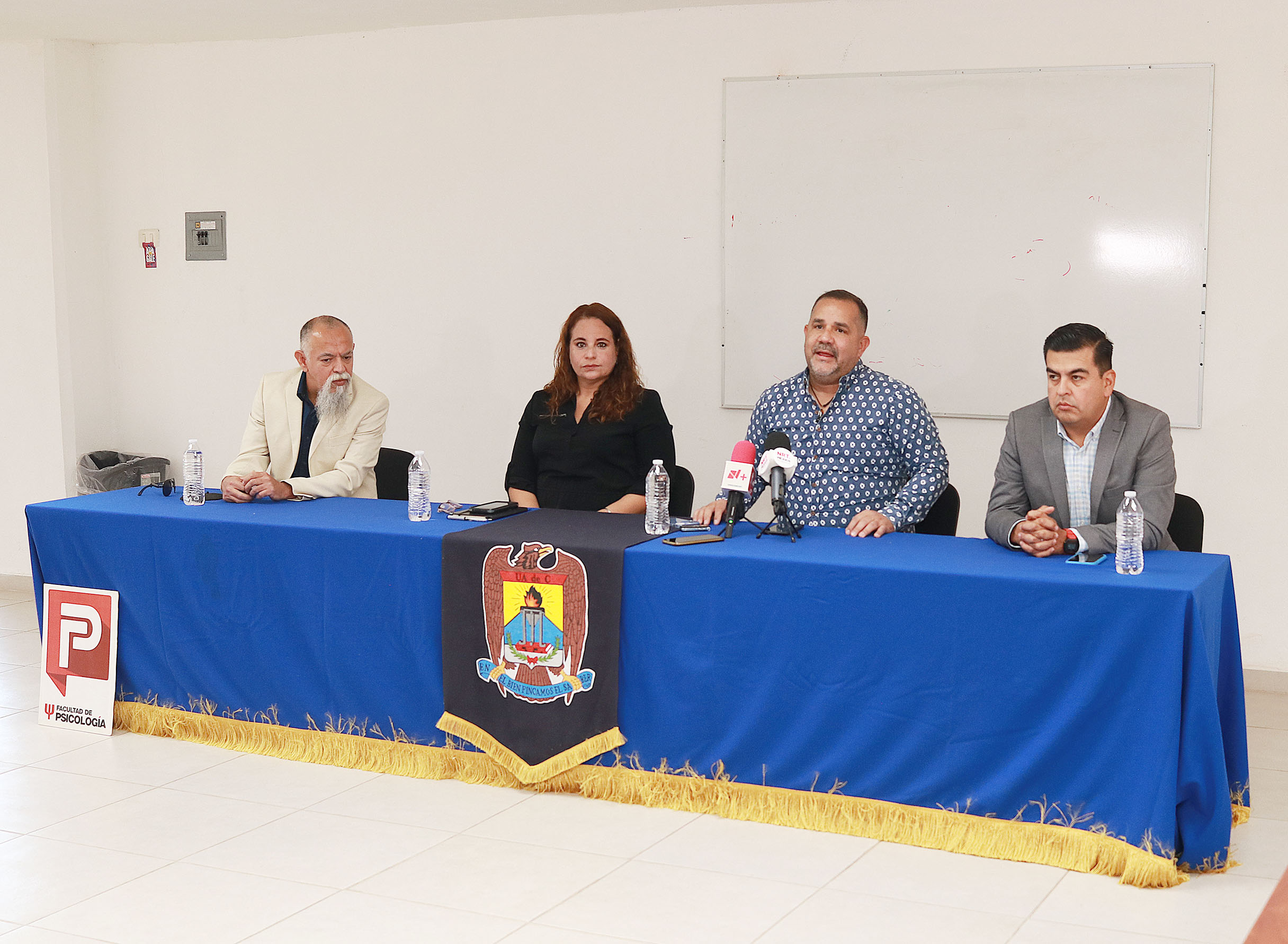 En conferencia de prensa la directora de la Facultad, Ana Berenice de la Peña Aguilar, el coordinador de la Maestría en Psicología Clínica con Orientación en Intervención Cognitivo-Conductual, José González Tovar y los miembros del Núcleo Académico de la Maestría en Investigación Social, Juan Carlos Centeno y Luis Castro, dieron a conocer información importante sobre ambos programas.