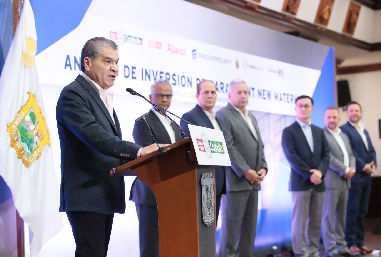 Saltillo, Coahuila de Zaragoza; a 17 de Agosto de 2023.- El gobernador Miguel Ángel Riquelme Solís anunció la inversión número 51 del 2023, con la llegada de la empresa Paramount New Materials al Parque Industrial Alianza, de Derramadero, con inversión de 200 millones de dólares y la generación de 1,225 nuevos empleos.